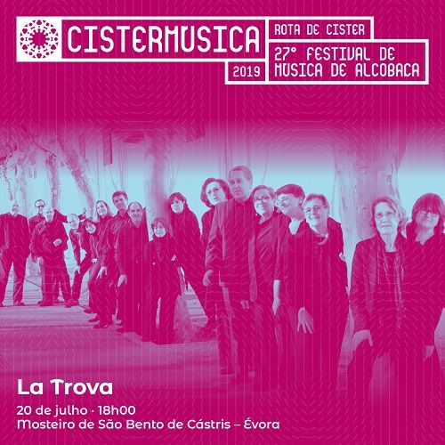Concerto pelo grupo vocal La Trova (Esp.), que se realiza dia 20 de julho, às 18h00, no Mosteiro de São Bento de Cástris, em Évora, inserido no programa do Festival Cistermúsica 2019. A entrada é livre.