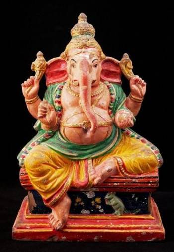 Ganesh é uma divindade do panteão hindu venerada por remover obstáculos, à semelhança de um elefante selvagem. A sua popularidade atravessou fronteiras e chegou até povos não hinduístas, onde se encontram devotos. Uma peça do Museu do Oriente.