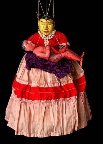 O Kolam é uma dança exorcista com máscaras, desempenhada para eliminar malefícios associados à gravidez, ao bebé e ao parto. A marioneta de fios da parturiente é a única utilizada neste teatro de máscaras. Uma peça do Museu do Oriente