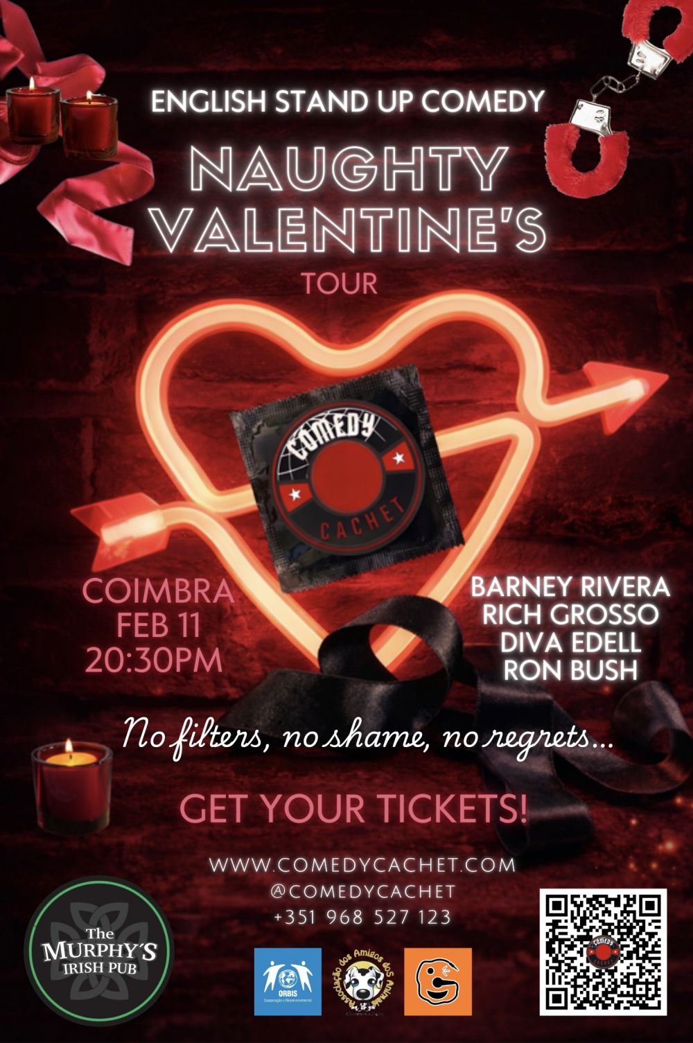 Naughty Valentine’s, presented by Comedy Cachet, is hitting Portugal from Braga to Faro, Porto to Lisbon, this February, with 5 stand-up comedians straight from the US who clearly didn’t get the “keep it polite” memo.