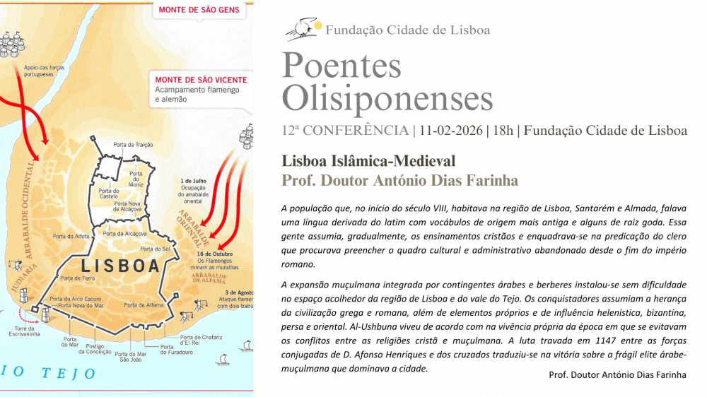 No âmbito do ciclo de conferências Poentes Olisiponenses, a Fundação Cidade de Lisboa apresenta a conferência "Lisboa Islâmica-Medieval", proferida pelo Prof. Doutor António Dias Farinha.