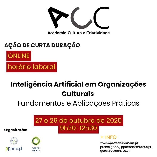 No âmbito da Academia Cultura e Criatividade, o Pporto.pt e a VERde NOVO promovem, nos próximos dias 27 e 29 de outubro, a Ação de Capacitação dirigida a responsáveis e colaboradores de organizações com atuação no setor cultural e/ou criativo bem como a quaisquer outros que tenham interesse no tema.