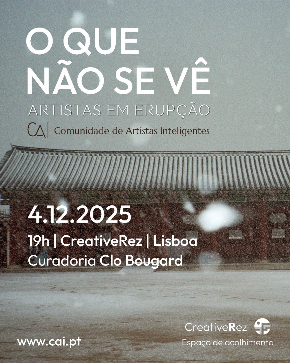 Para assinalar o primeiro aniversário, a Comunidade Artistas Inteligentes (CAI) organiza a sua primeira exposição colectiva, intitulada “O que não se vê”, que irá inaugurar no dia 4 de dezembro, às 19h00, no espaço CreativeREZ Lisboa.