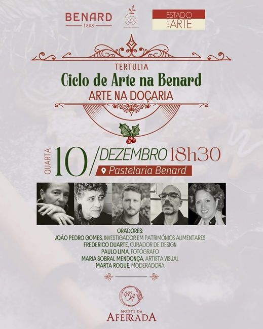 O Ciclo de Arte Na Benard apresenta "Arte Na/Da Doçaria", explorando a fusão entre história, imagem e sabores, na icónica Pastelaria Benard, dia 10 de dezembro pelas 18h30, no Chiado, em Lisboa.