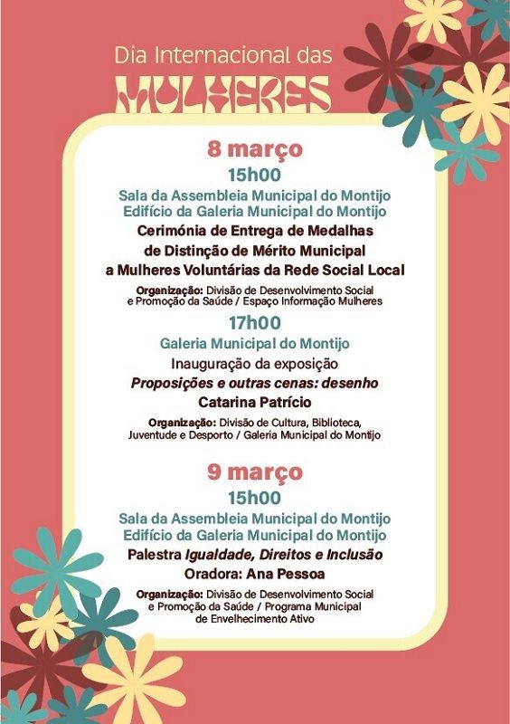 A Câmara Municipal do Montijo assinala o Dia Internacional das Mulheres com um conjunto de iniciativas que destacam o papel das mulheres na sociedade, promovendo a reflexão, a valorização cultural e o reconhecimento público do contributo feminino na comunidade.
