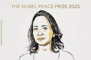A opositora venezuelana María Corina Machado é a vencedora do Prémio Nobel da Paz de 2025 "pelo seu trabalho incansável na promoção dos direitos democráticos para o povo da Venezuela e pela sua luta para alcançar uma transição justa e pacífica da ditadura para a democracia".