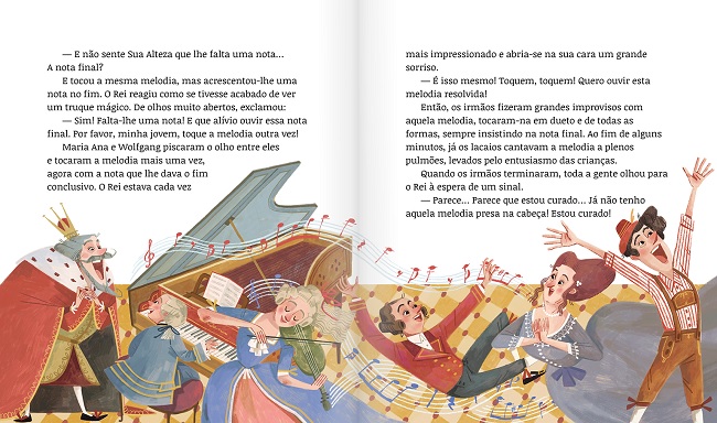 Esta é uma narrativa repleta de situações caricatas e bem-humoradas, que vai conquistar a imaginação das crianças e despertar a curiosidade para descobrirem mais sobre a vida de algumas das personagens deste conto, como os irmãos Mozart, o mundo da música e da Áustria.