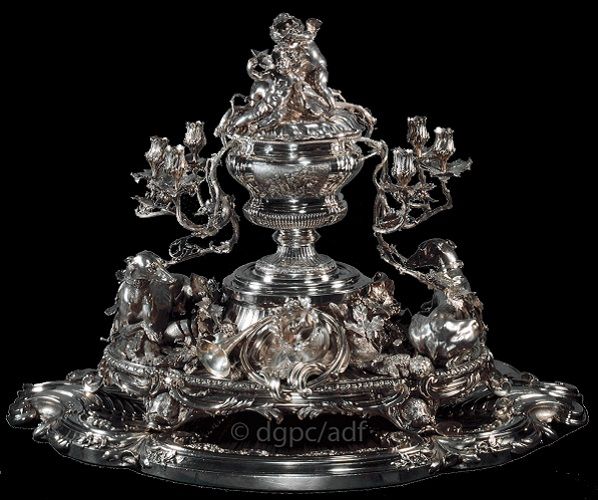 A necessidade de se fabricarem este tipo de peças, hoje raras, explica-se no contexto do cerimonial do serviço à la francaise, instituído por Luís XIV em Versailles, nos finais do século XVII, segundo o qual os alimentos eram colocados sobre a mesa em séries sucessivas, que se designavam cobertas ou serviços, e cujo número variava conforme o aparato do banquete. Apenas permaneciam sobre a mesa os saleiros, especieiros, galheteiros e açucareiros, que eram reunidos para maior comodidade num surtout, colocado no centro da mesa, e que à noite também servia de luminária. A esta função utilitária se associava o aspeto ornamental, tornado preponderante à medida que se avançava na primeira metade do século XVIII.