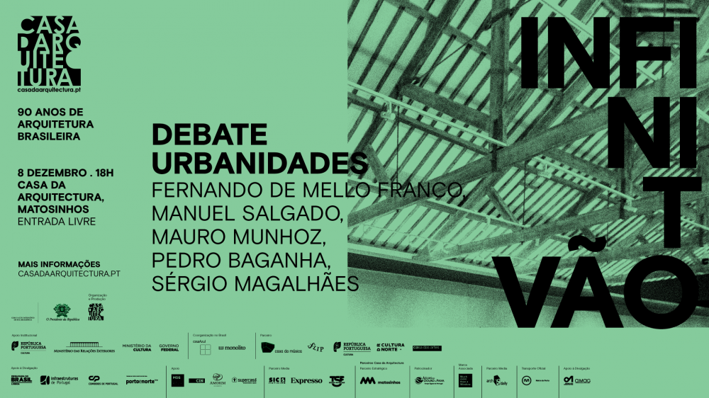 Integrado no programa paralelo da Exposição “Infinito Vão – 90 Anos de Arquitetura Brasileira”, patente na Casa da Arquitectura até 28 de abril de 2019, o debate “Urbanidades” pretende promover um diálogo sobre os desafios e as estratégias para o desenvolvimento das cidades contemporâneas de diversas escalas, com um grupo de arquitetos ligados à arquitetura e à gestão urbana, urbana, estabelecendo paralelismos e confrontando experiências entre a realidade portuguesa e a brasileira.