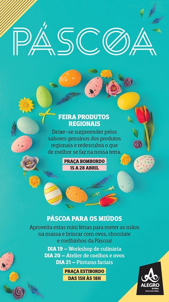 Nesta Páscoa, há atrações para todos no Alegro Setúbal. Traga a sua família à Feira de Produtos Regionais e deixe os mais novos divertirem-se nas várias atividades preparadas para as férias.