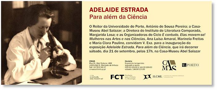 “Adelaide Estrada: Para além da Ciência”, é a exposição que irá inaugurar no próximo sábado, dia 21, pelas 17h, na Casa-Museu Abel Salazar, e que presta homenagem à vida e obra de Adelaide Estrada (1898 – 1979).
