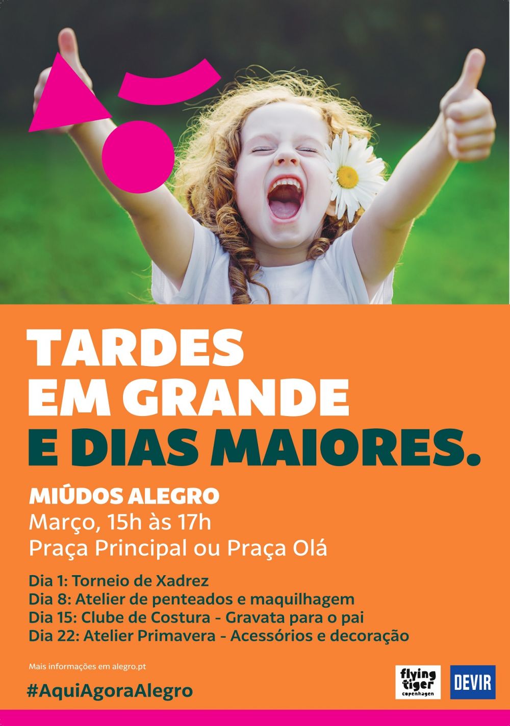 *As sessões Miúdos Alegro têm lugar na Praça Principal, Praça Olá ou Experience Box, conforme a agenda, entre as 15h00 e as 17h00.