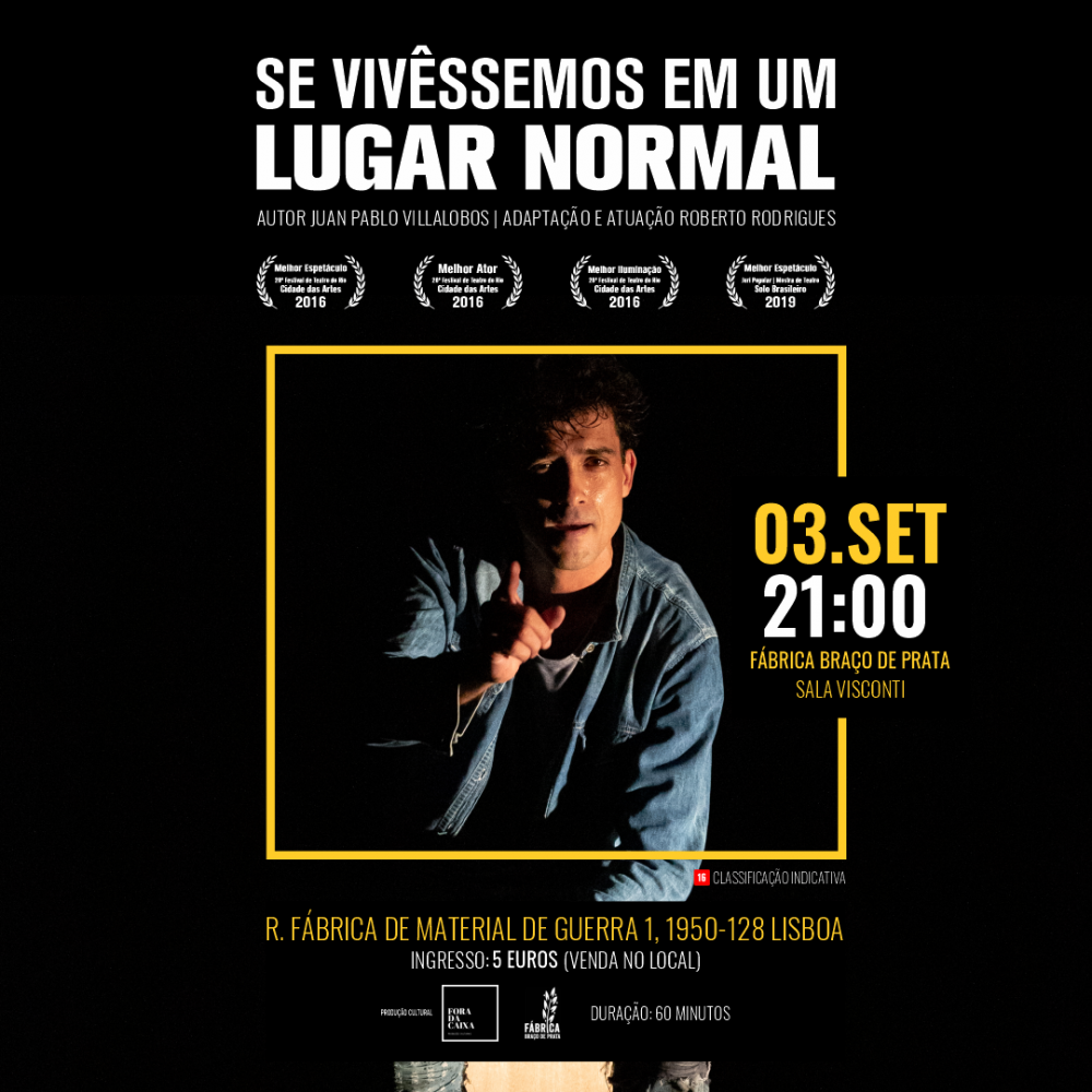 Escrita por Juan Pablo Villalobos, com adaptação de texto do encenação de Roberto Rodrigues, a peça ”Se vivêssemos em um lugar normal”, retorna à Portugal para uma segunda temporada.