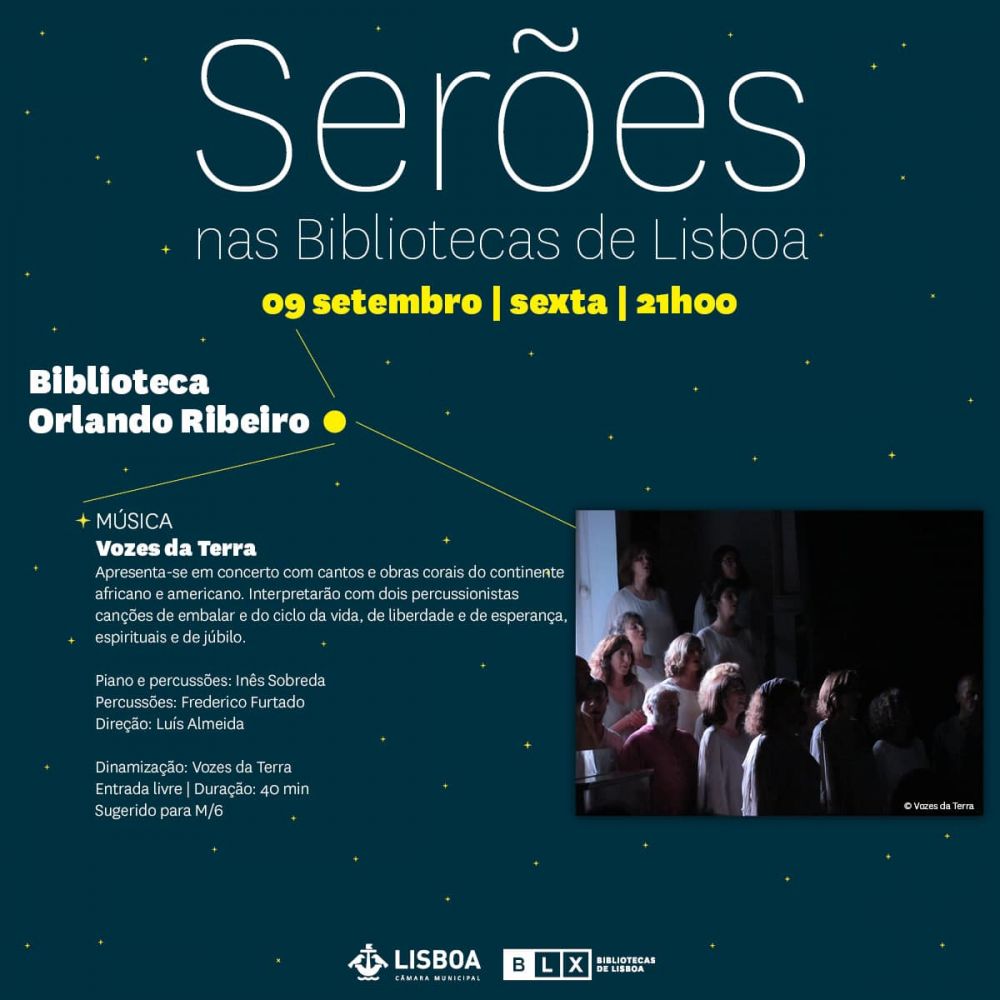 Serões nas Bibliotecas de Lisboa com Coro Vozes da Terra, dia 9 de setembro, pelas 21h00, na Biblioteca Orlando Ribeiro