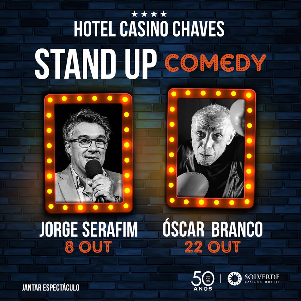 Nos próximos dias 8 e 22 de outubro, o stand up comedy irá invadir o Hotel Casino Chaves, em dois jantares espetáculo com atuações dos comediantes Jorge Serafim e Óscar Branco, respetivamente.