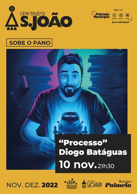 O humorista Diogo Batáguas apresenta o espetáculo “Processo”, a 10 de novembro, às 21h30, no Cine-Teatro S. João, em Palmela.