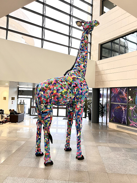 Considerado o maior ruminante e o mamífero mais alto da Terra, a girafa, tal como a recente representação escultórica no Taguspark, tem um impacto particular no público devido à sua dimensão e padrão que lembra mosaicos. A "Girafa Lavoisier” aguarda a sua visita na Cidade do Conhecimento, no Núcleo Central do Taguspark!