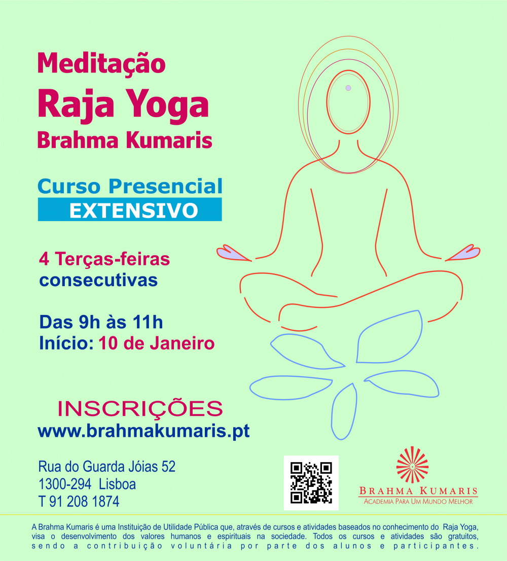 Brahma Kumaris promove Curso de Meditação Raja Yoga, constituído por 4 aulas consecutivas.