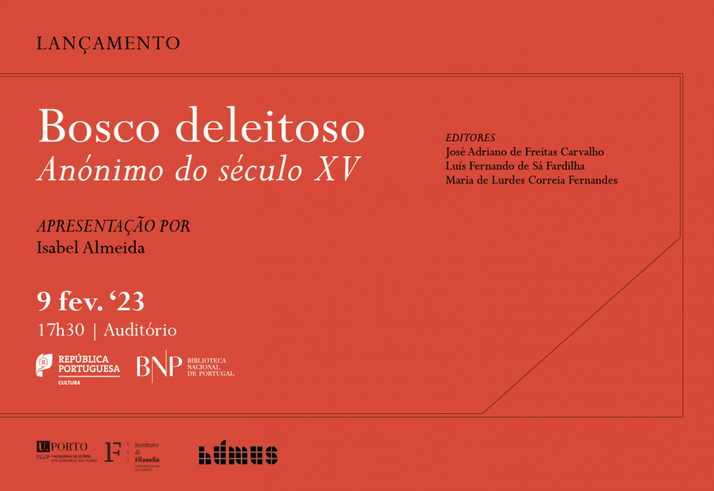 O Instituto de Filosofia da Universidade do Porto (IF-FLUP) e as Edições Húmus publicam uma nova edição do Bosco deleitoso, obra anónima do século XV, de que a Biblioteca Nacional detém um dos dois únicos exemplares existentes em Portugal.