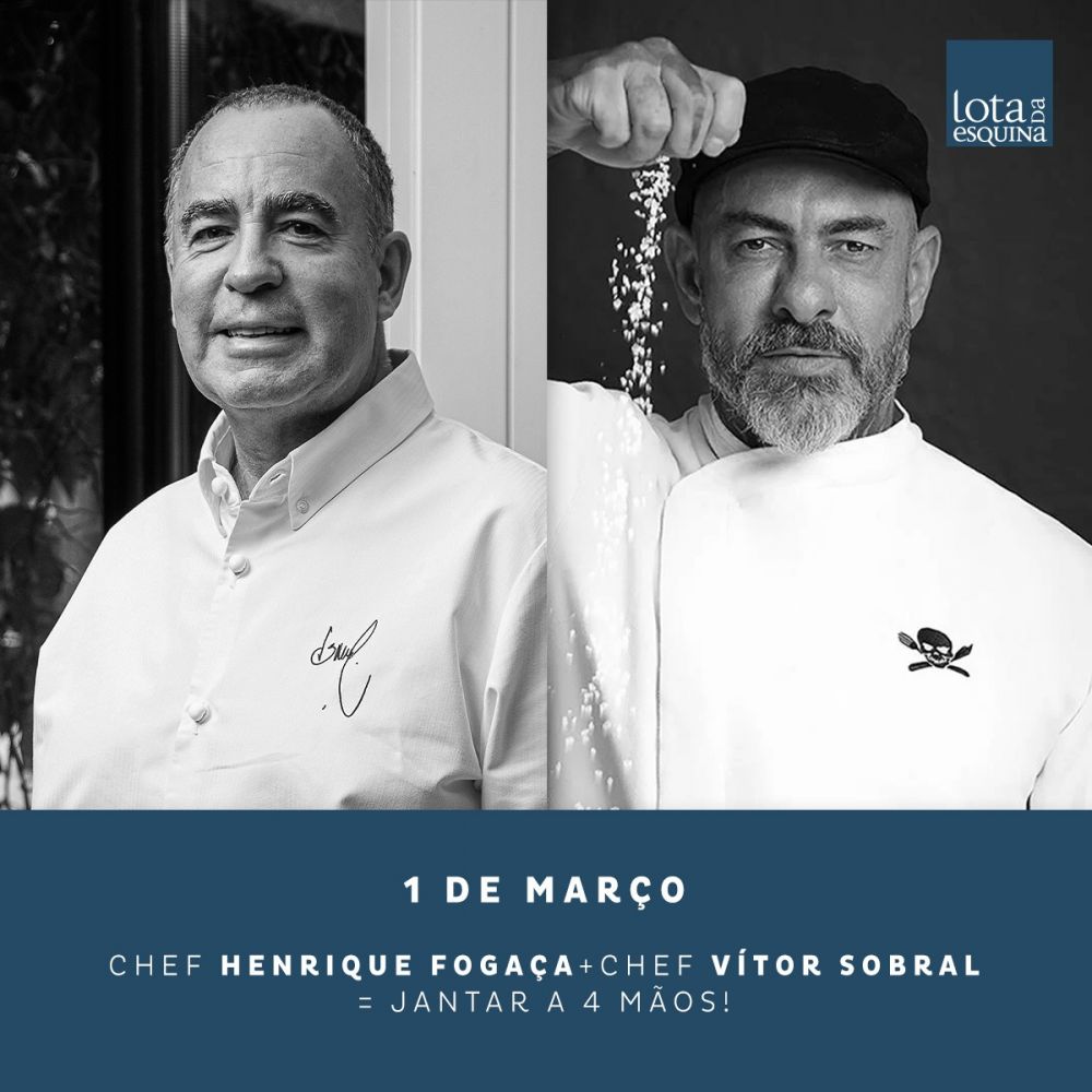 O chef Vítor Sobral e o chef brasileiro Henrique Fogaça juntam-se para preparar um jantar a 4 mãos, na Lota da Esquina, em Cascais. O jantar vai decorrer no dia 1 de março, com um menu que promete unir o melhor da cozinha dos dois lados do Atlântico.