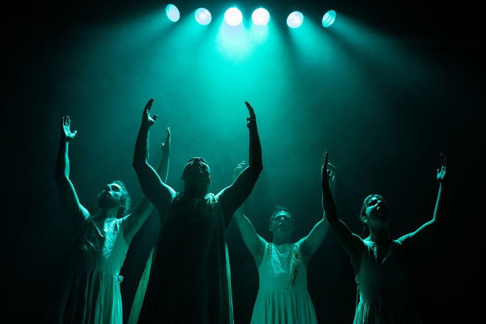 Texto Elfriede Jelinek | Tradução e dramaturgia Anabela Mendes | Direção artística Pedro Alves | Interpretação João Pedro Leal, Philippe Araújo, Rafael Barreto e Rita Morais | Banda sonora original Maria da Rocha | Cenografia Pedro Silva | Figurinos Catarina Graça | Direção de movimento Esther Latorre e Hugo Pereira | Apoio de voz e texto João Henriques | Direção técnica, desenho de luz e operação Carlos Arroja | Apoio técnico Diogo Graça | Direção de produção Inês Oliveira | Assistência de encenação Maria Carneiro e Milene Fialho | Fotografia e produção executiva Catarina Lobo | Costureira Rosário Balbi | Apoio à criação em residência Alma d’Arame e DEVIR CAPa | Participação na criação Sílvia Barbeiro | Parceria Mestrado Processos de Criação da Faculdade de Ciências Humanas e Sociais da Universidade do Algarve | Apoios 5àSec Rio de Mouro, Synthomer, Junta de Freguesia de Algualva e Mira Sintra | Produção teatromosca | Coprodução Colectivo Glovo, Teatro Diogo Bernardes, Teatro Nacional São João e Theatro Circo | Agradecimentos Teatro Nacional D. Maria II, Show Ventura | O teatromosca é uma estrutura financiada pela República Portuguesa – Cultura / Direção-Geral das Artes e pela Câmara Municipal de Sintra.