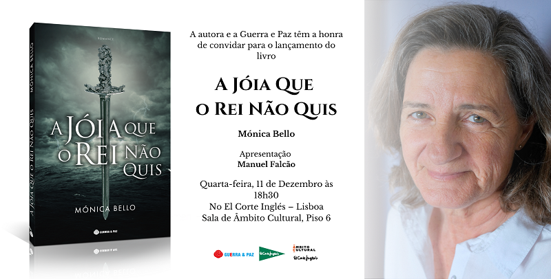 A autora e a Guerra e Paz têm o prazer de convidar para a apresentação do livro A Jóia Que o Rei Não Quis, de Mónica Bello, no dia 11 de Dezembro, quarta-feira, às 18h30, na Sala de Âmbito Cultural do El Corte Inglés, em Lisboa.