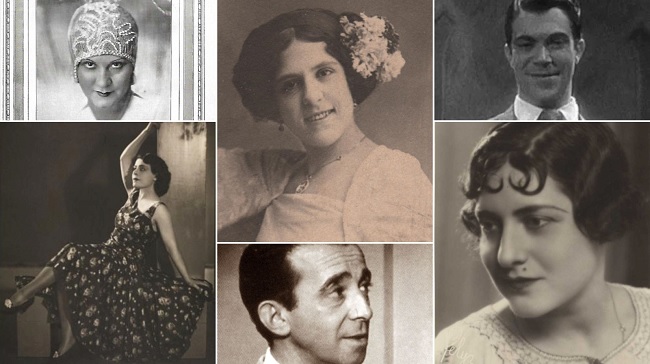 Em cima: Eva Stachino, Maria Vitória, Barroso Lopes. Em baixo: Luísa Satanela, Eugénio Salvador e Virgínia Soler.
