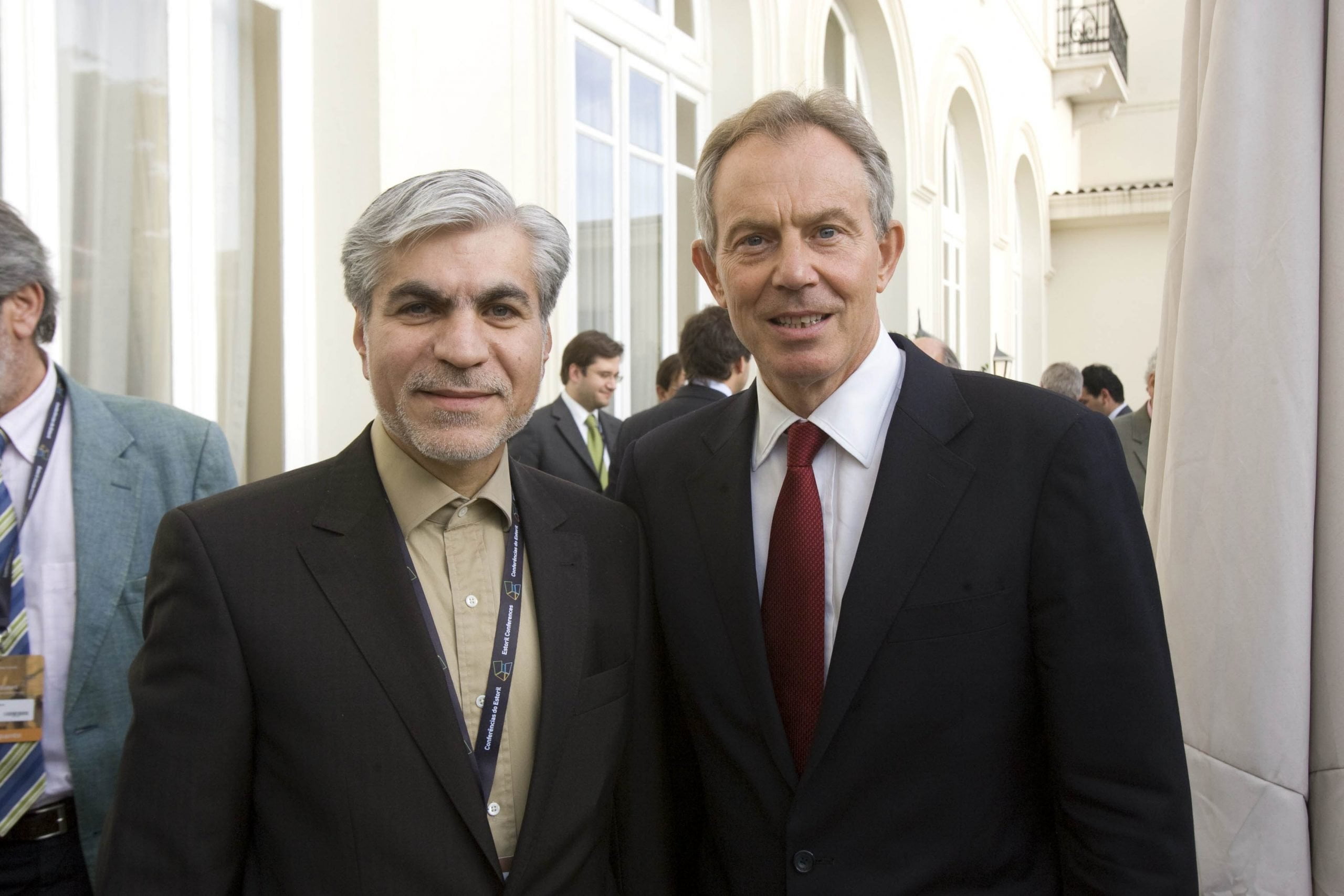 Seyed Hosseib Adeli (à esquerda na fotografia) e Tony Blair (à direita) na Conferência do Estoril na primeira Conferência do Estoril “Global Changes, Local Answers”, co-organizada pelo IEEI, o Município de Cascais e o DNA Cascais entre os dias 7 e 9 de maio de 2009 no Centro de Congressos de Cascais.